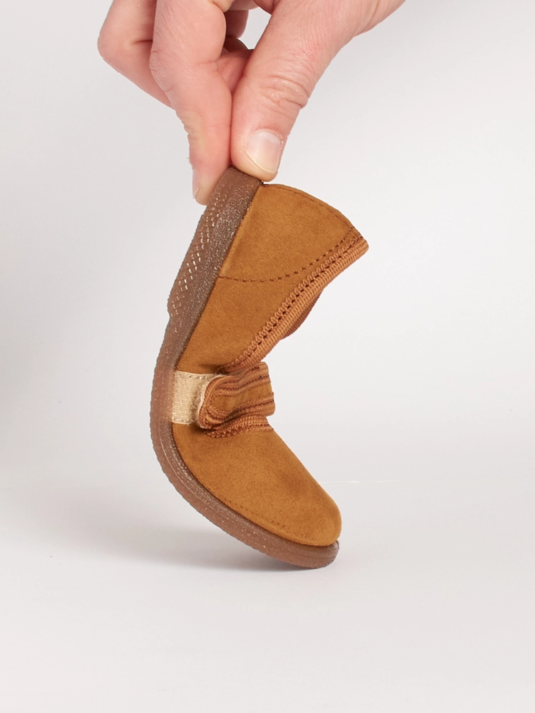 Il modello Isabella è progettato con una punta larga che non stringe le dita, garantendo il benessere naturale del piede in ogni movimento. Questa ballerina classica marrone bimba è realizzata in tessuto BIO effetto scrivente, estremamente flessibile e leggera. La fodera in cotone naturale e il plantarino in pelle permettono di assorbire il sudore, mantenendo il piedino fresco e asciutto anche durante le giornate più calde.