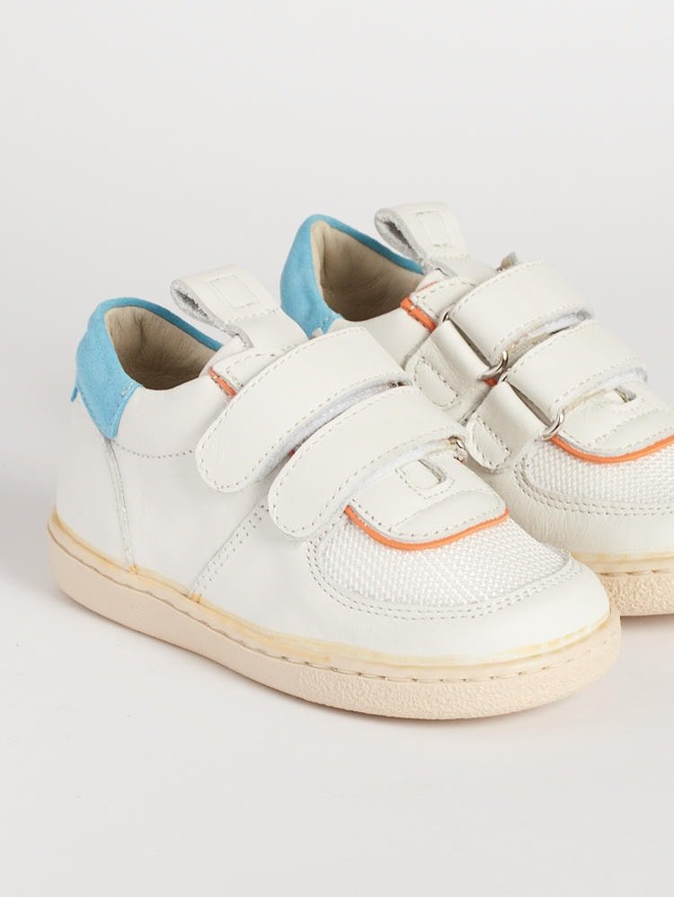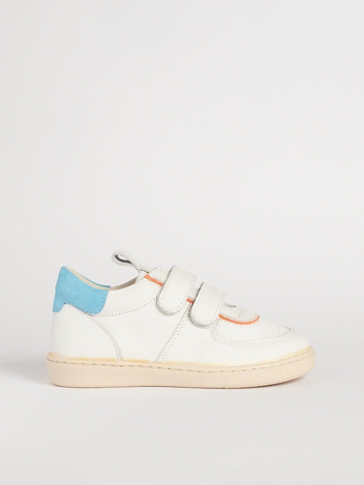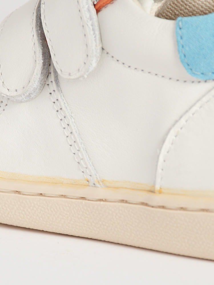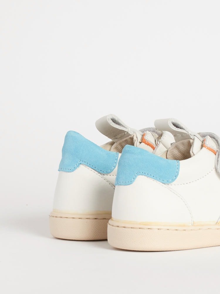 Scegliere BARBERINI significa sostenere l’antica cultura calzaturiera italiana. Le Bradamante sono realizzate in edizione limitata da piccole famiglie di artigiani. Per questo modello abbiamo optato per una pelle bianca con dettagli azzurri e arancioni. Il tocco “effetto colla” sull’attacco della suola testimonia una produzione non industriale, fatta di amore e passione per la qualità autentica.